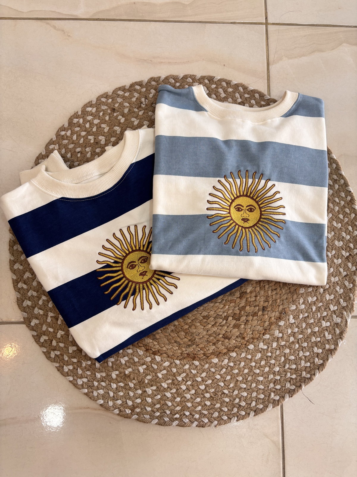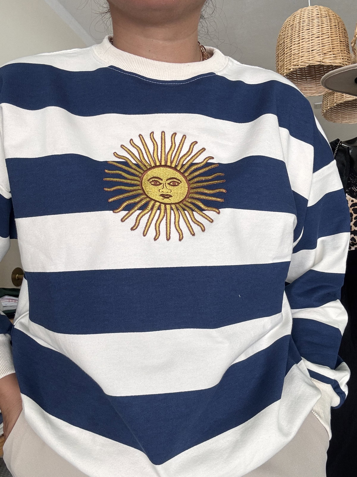 Buzo de Argentina confeccionada en tela rústica de exelente calidad con bordado de sol de mayo para quienes buscan una prenda más liviana y versátil, la frisa es más fresca y respirable, con cuello redondo .