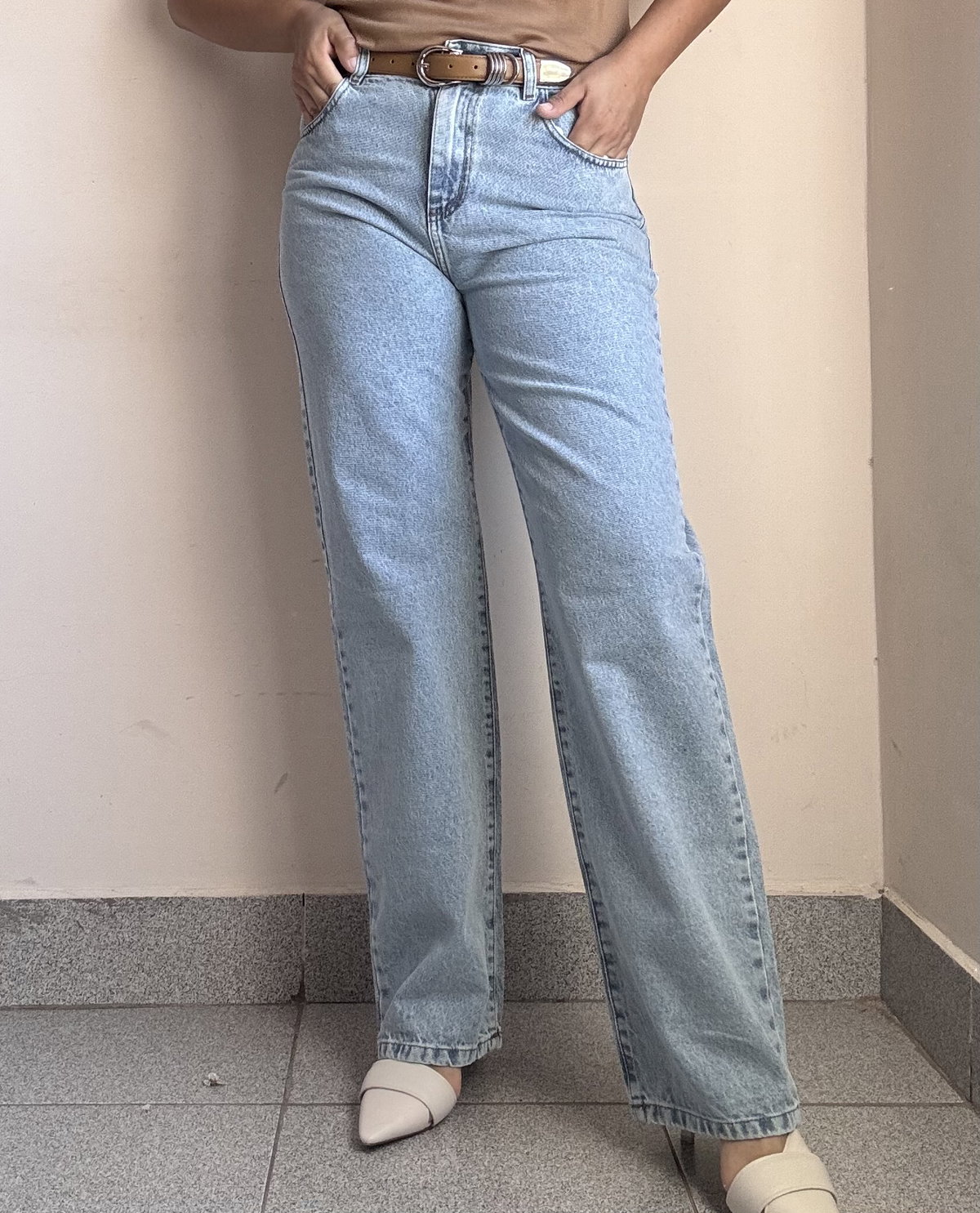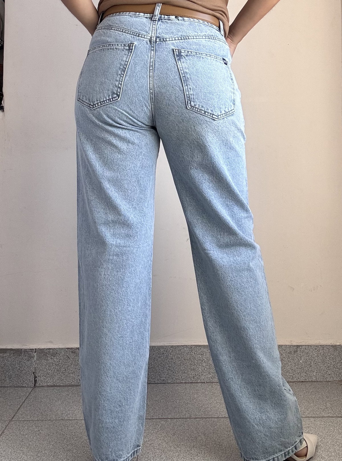 Wide celeste corte recto 100% algodón.tiro alto.